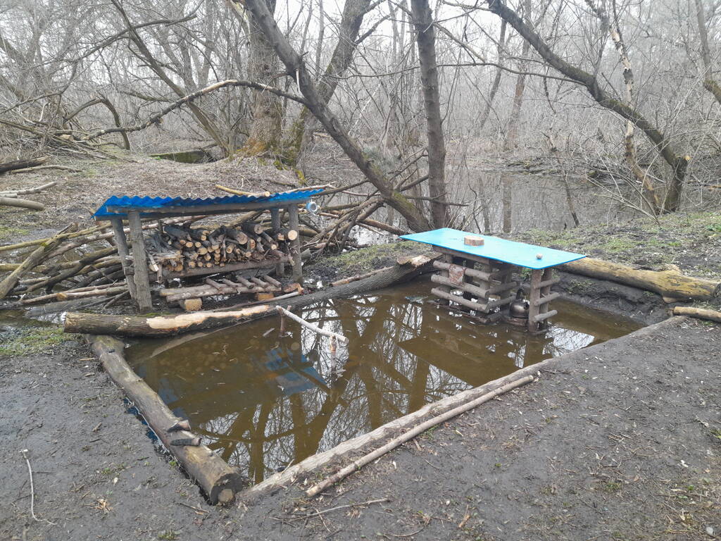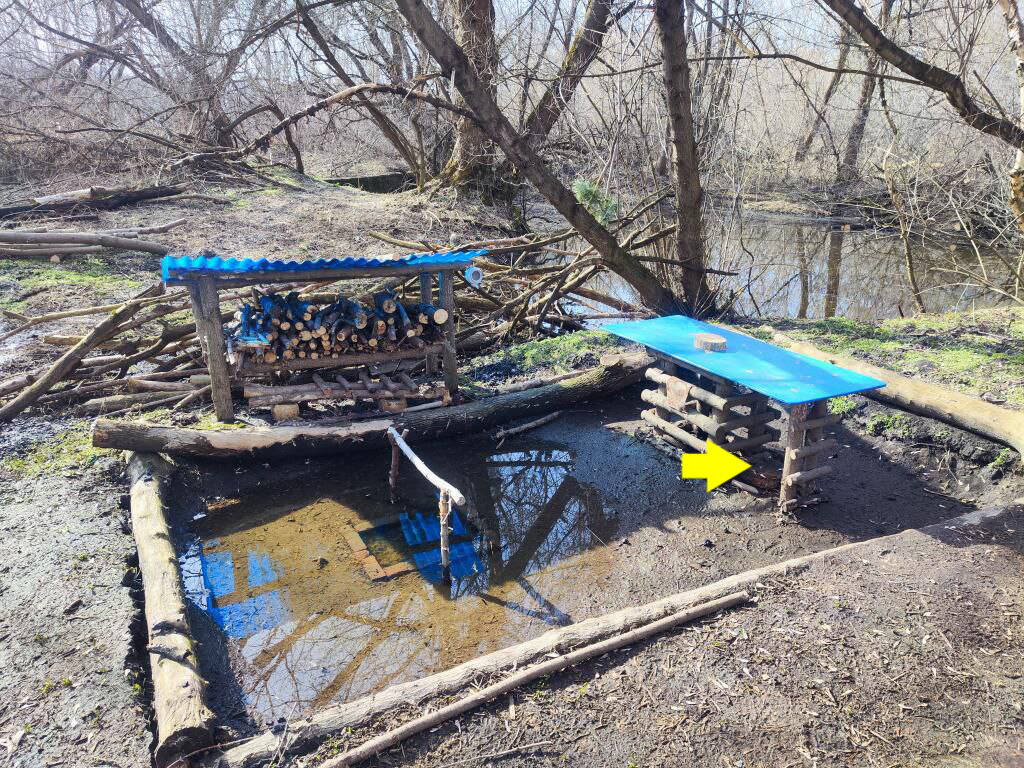 На предпоследнем фото видно озерцо, откуда вода поступает, можно попробовать дамбу небольшую сделать за дровником.