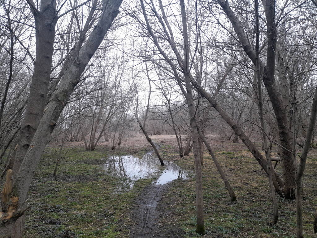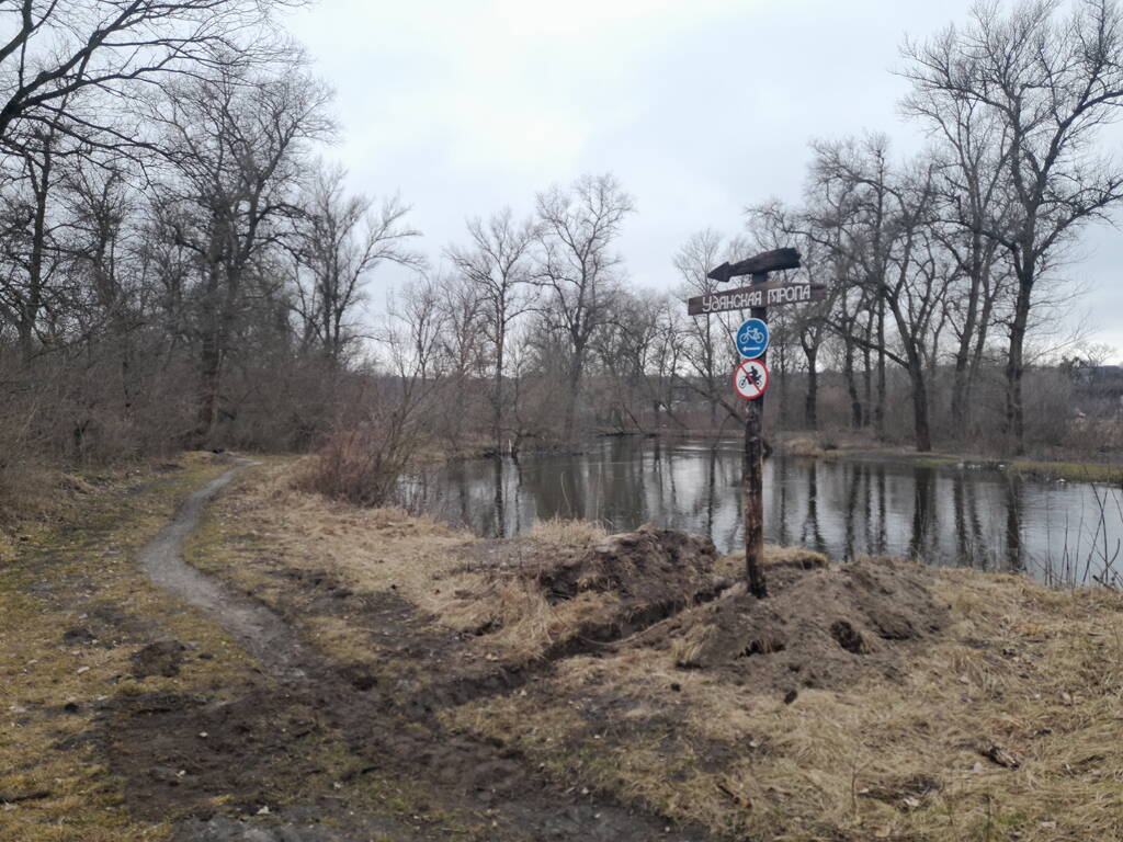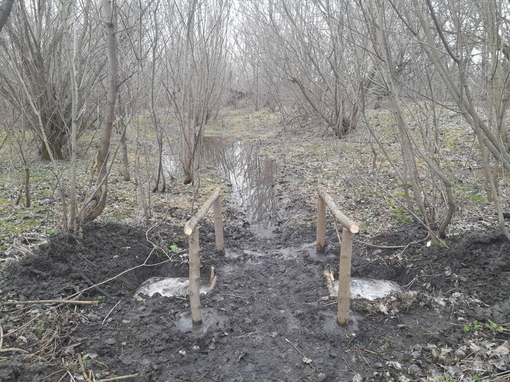В самом начале тропы, возле столба, собиралась большая лужа..., прокопал канал в реку.