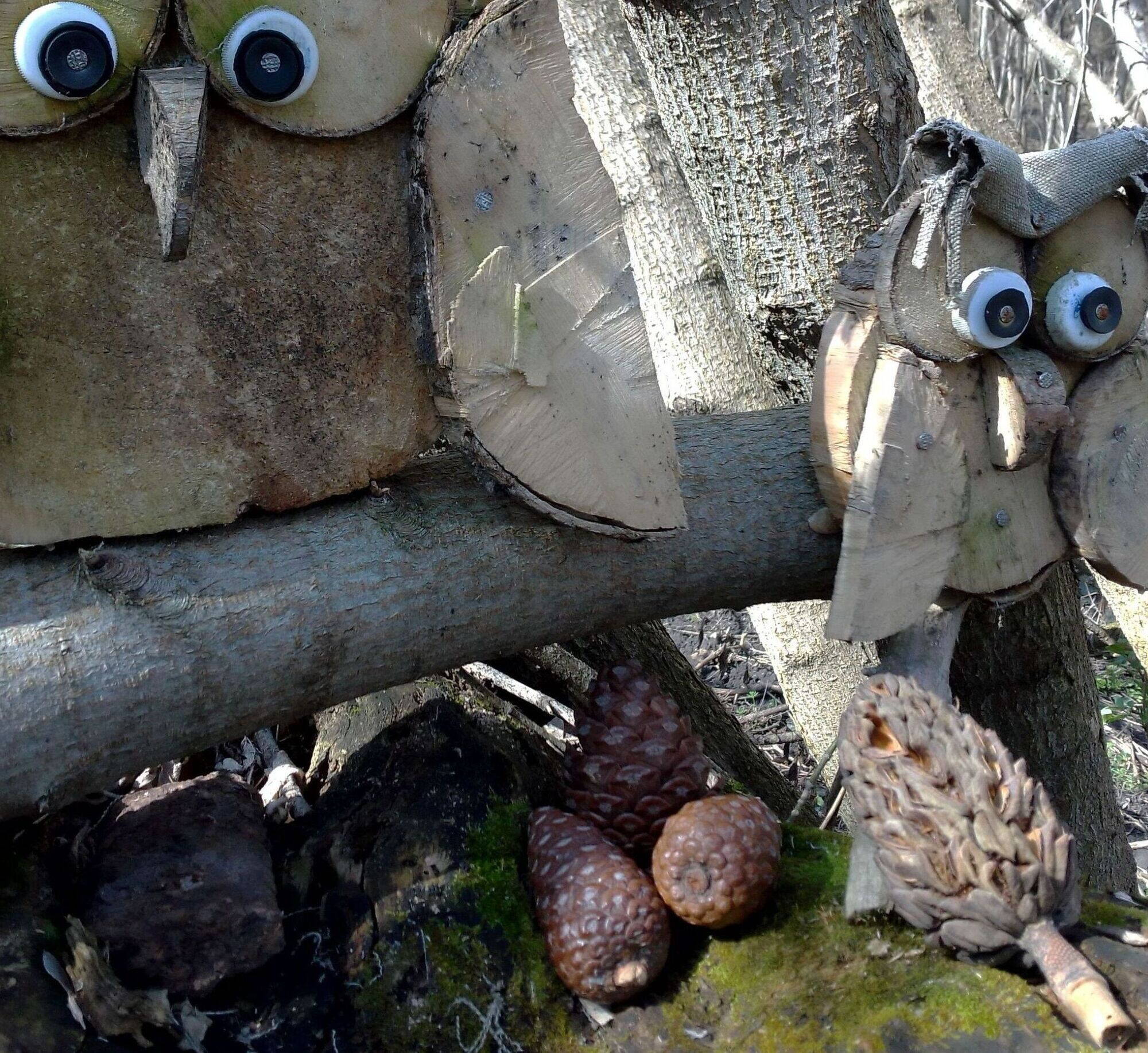 Чайник на месте! :D На разляпистом дереве за двумя совами оставила декоративные шишки, возможно пригодятся в качестве ушей-носов следующих животных из дерева или для прочей "экибаны". Если белки и птицы сочтут орехи в кормушке мелкими, то их можно посадить...или съесть:)