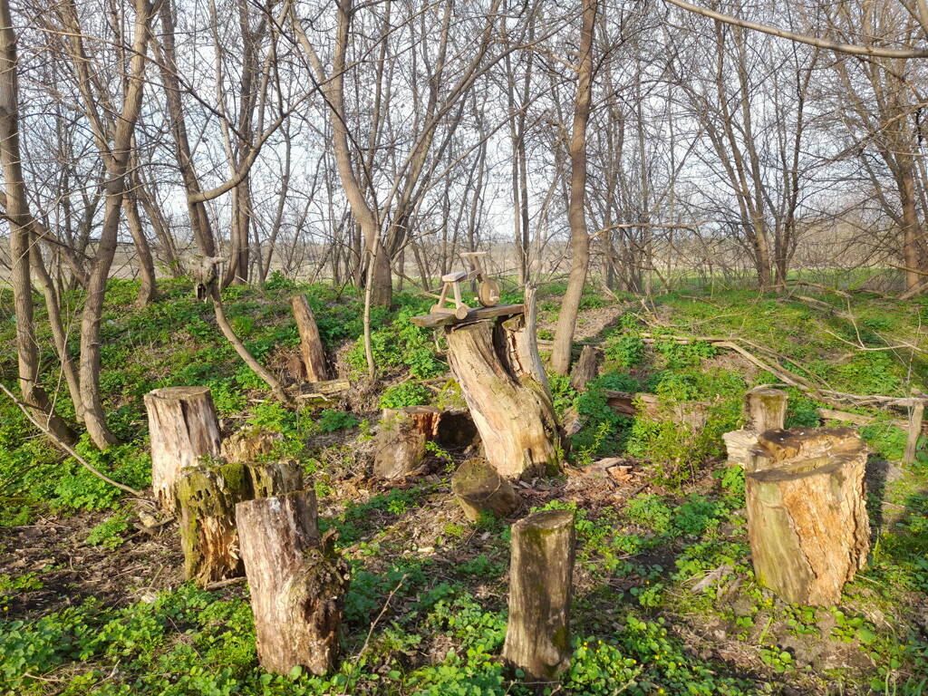 Или повалить дерево потолще поперек велодорожки и вырезать бензопилой кусок ствола 50-100 см.