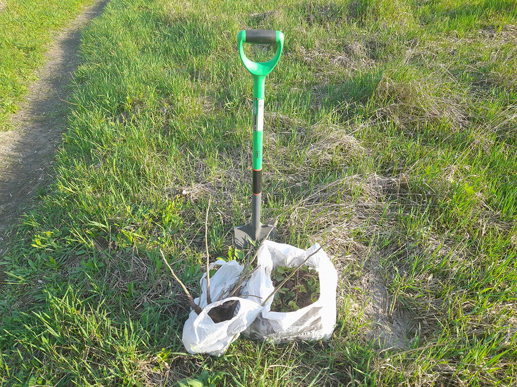 Спасибо Люботину за 12 саженцев ореха, спасибо Виктории с улицы Софиевской (Бабаи) за 110 кустиков ремонтантной земляники. Всё это высажено только что по-над нашей велотропой.