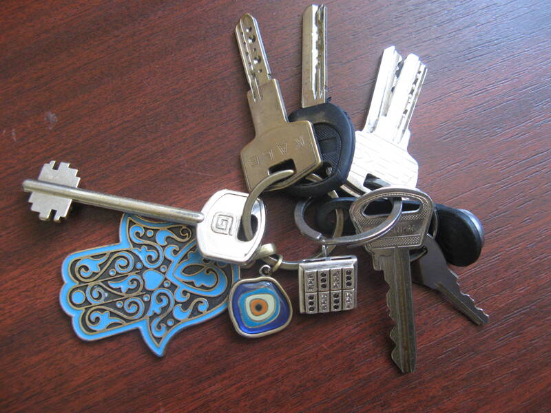 9 мая на пригорке над детской железной дорогой (перед мостом на Деревянко, остановка Сокольники, за киоском) была найдена связка ключей с тремя брелками.