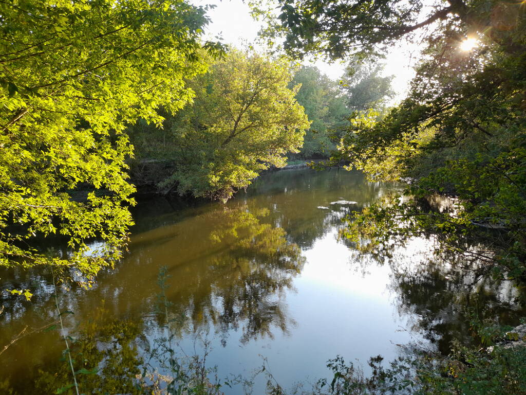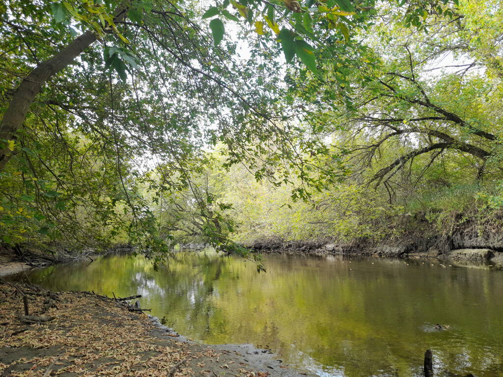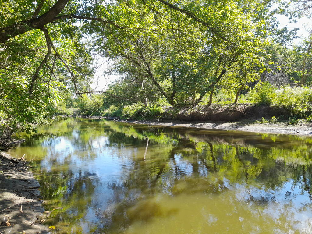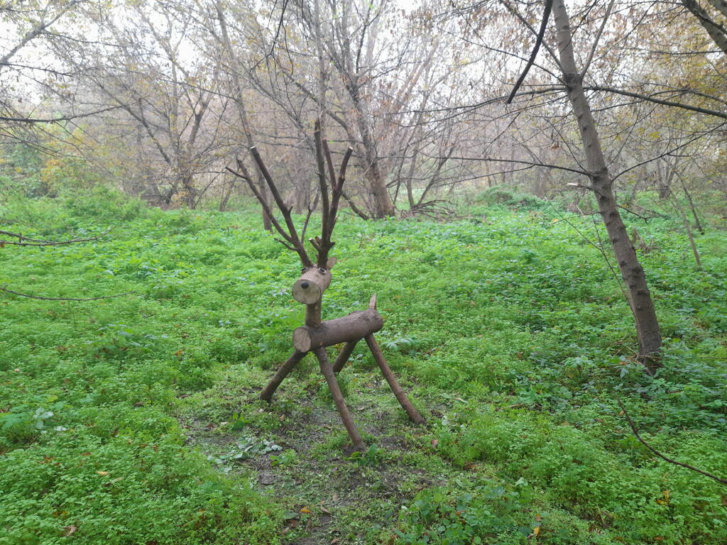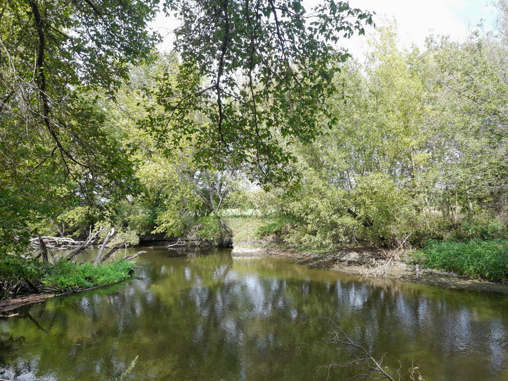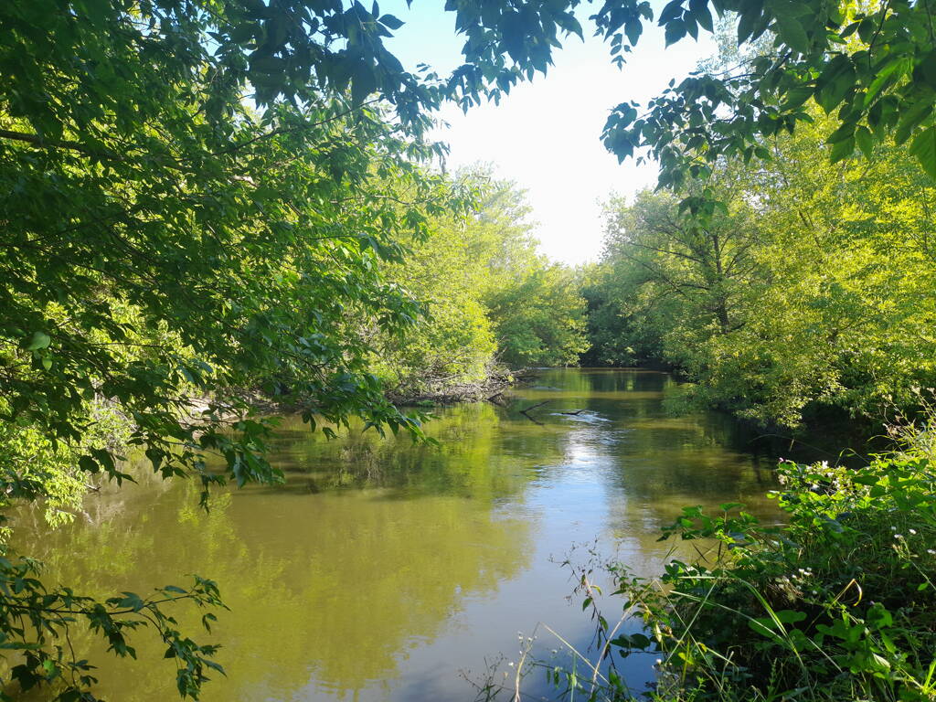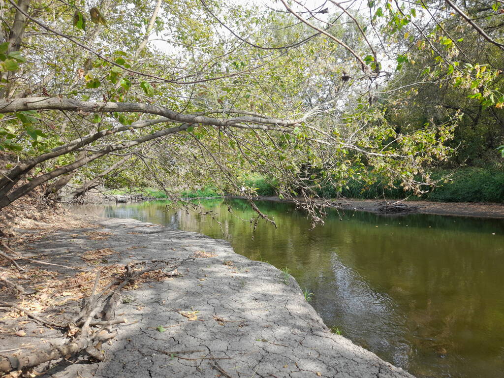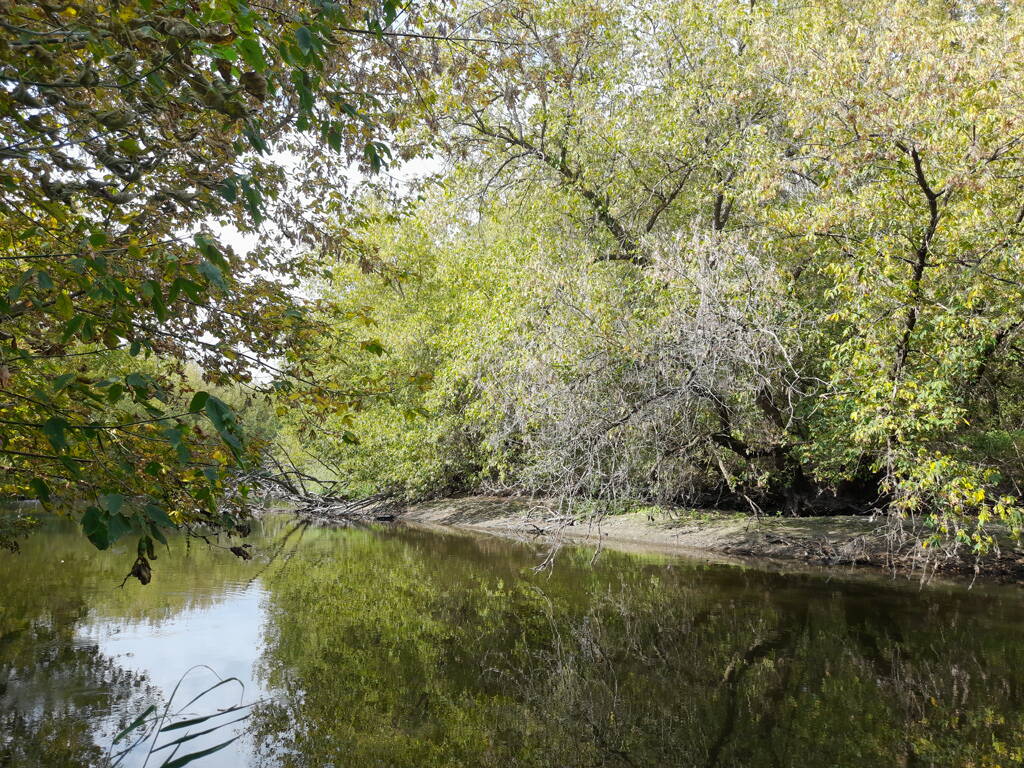 Метров 200, с начала маршрута, что-то наподобие тропы таки было, дальше — сплошной мрак..., мы выкосили уйму травы, разобрали немерено завалов и спилили мешающие нам деревья (инвазивные). Если посмотреть на карту, можно увидеть, что дорога есть, она проходит по лугу и в паре мест практически соприкасается с нашим маршрутом, но, её разбивают машины и квадроциклы, после дождей образовываются лужи..., из-за этого, нам и приходится воздвигать мосты, дабы вообще не выезжать на неё.