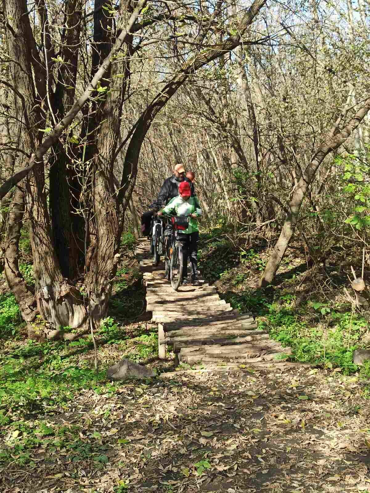 Идею создания веломаршрута, дабы соединить Бабаи и Безлюдовку-Хорошево по левому берегу реки, вынашивал пару лет..., в прошлом году, на экоакции "Чистые Уды", поделился оной с товарищем, который активно её поддержал. Свободного времени было немного (в приоритете были субботники на реке), но, кое-что начали делать, в этом (2021-м) году. По факту должен получиться маршрут длиной около 5 километров (пока проложено 3400 метров). Много времени отнимают мосты, которые приходится воздвигать, на данный момент, их уже 4 (2, 6, 11 и 14 метров, на подходе ещё один — 13 метров). Есть много идей, которые мы хотим воплотить на маршруте..., кое-что уже есть — мосты, зона отдыха с лавочкой, велопарковкой и столом, чуть дальше — красивое дерево, которое хотим украсить скворечниками (один уже висит), напротив дерева — кресло. Иногда нам помогают, но, в основном, мы делаем маршрут вдвоём.