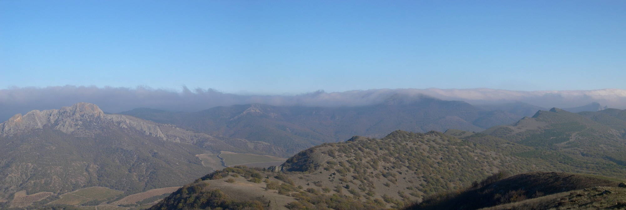 Без движняка... может только восточный Крым. Ходили на три дня в последнем ноябре. Маршрут был Старый Крым - мон.Сурб-Хачь - хр. Туар-Алан - Краснокаменку, а дальше перевалив хребты Армутлук и Тарак-Таш ушли на Токлук-Сырт. В последний день спустились через Ай-Георгий в Судак и еще успели в Новый Свет смотаться налегке, откуда уже пешком вдоль моря под Соколом вернулись на автостанцию, а там уже домой.