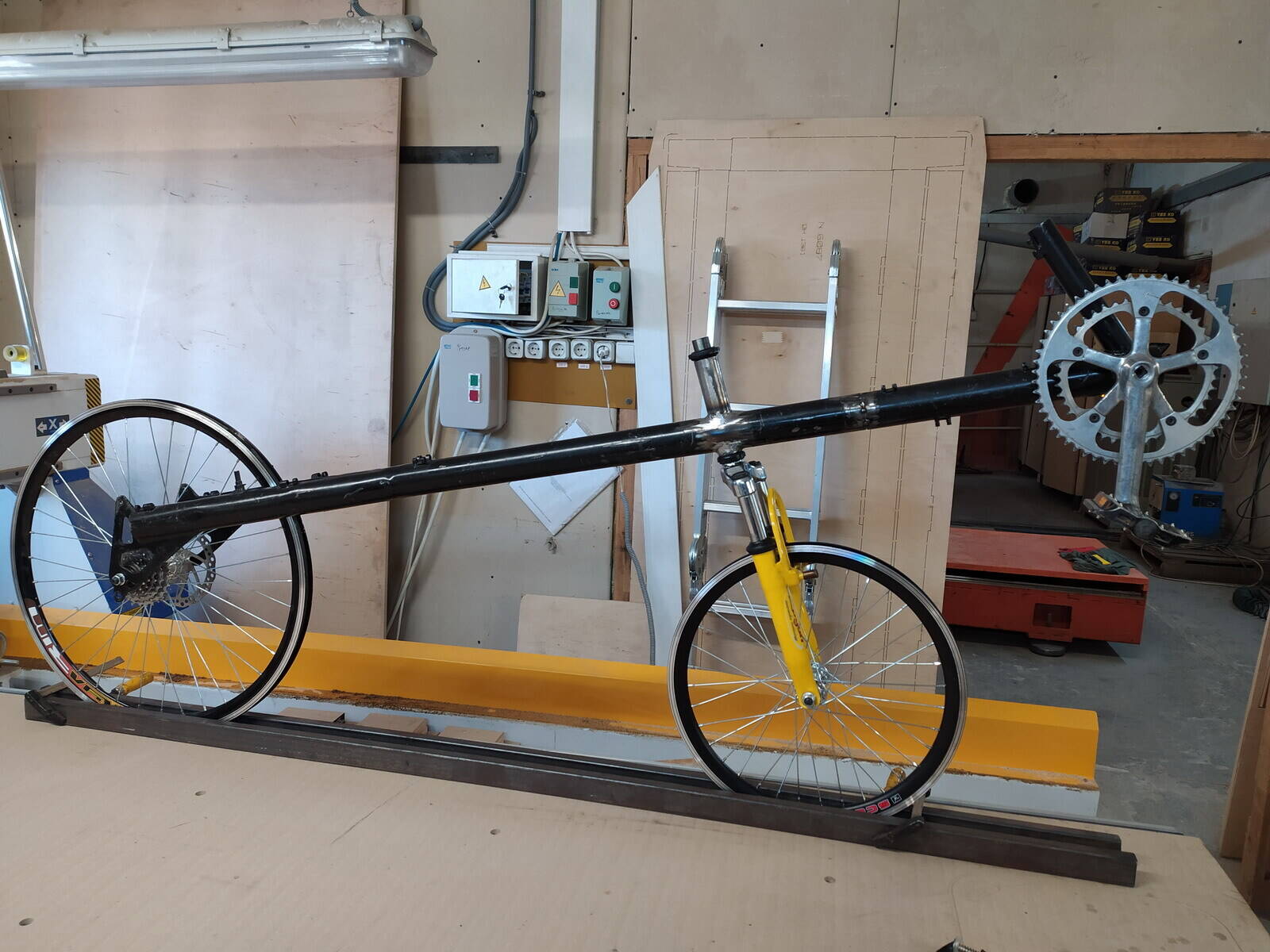 Применил новые узлы прокладки цепи, убрал хомуты. Новый узел крепления сидения. Новое сидение. Укоротил раму. Протестировал макет и еще раз укоротил трубу каретки. В результате всех работ изменилась и длина тросов. Получилось применить стандартные длины, без переходников и сшивки.