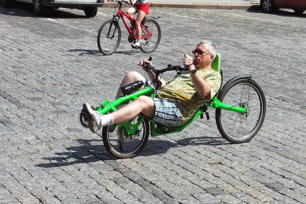 3. Что касается прыжков по бордюрам - лигерады есть разной конструкции, гоночный на шоссейных колесах этого эксперимента может и не пережить, на двухподвесе с МТБ колесами возможно и получится, но удар, по понятным причинам, будет заметно жестче и аппарату это не на пользу. Что до ездыпо тротуарам, то любому взрослому велику (в том числе и лежачему) там делать особо нечего.