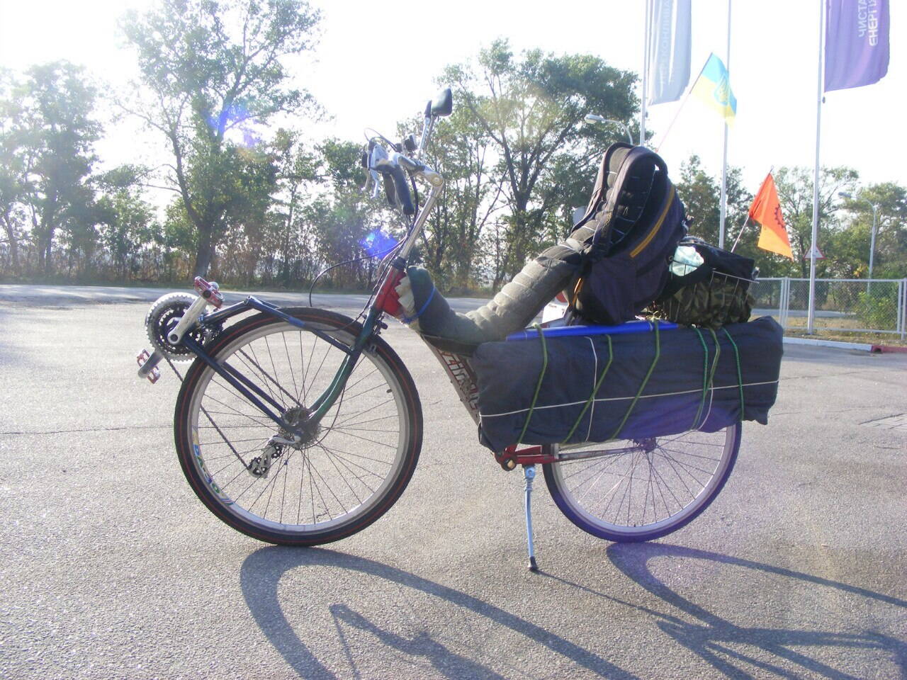 Первые ощущения – машина быстрая, легкая и устойчивая. Если поставить резину пошире (стояла сзади 28 мм, впереди ведущая 27 мм) – то можно смело и по брусчатке ехать, причем довольно комфортно. Подъемы берутся довольно таки легко. Управление информативное и более плавное чем на ” долгострое”. откатав почти год и около 1000 км, был вынужден модифицировать раму, (из за поломки) . И с помощью моего Друга и большого энтузиаста - Алексея Ганшина осуществил дальнейшее усовершенствование конструкции. появилась задняя подвеска и пластиковый кофр-багажник. а так же дисковые тормоза. в данный момент лигерад выглядит примерно так