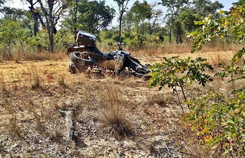 На очередном таком малом песке, я падаю, расхренячивая левый кофр в хлам. Встаю собираю с пол часа. Хорошо что алюминиевые кофры ремонтопригодны в полевых условиях.