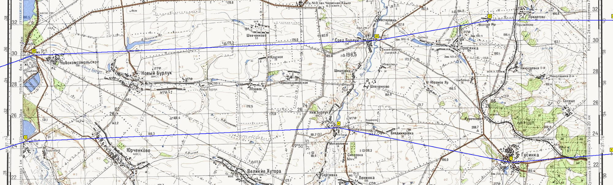 В файле "Бурлук меч.zip" можно скачать точки (.wpt) и маршрут по ним (.rte) для OziExplorer.