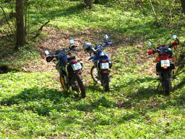 Сегодня с подачи Андрея (Shef) съездили в составе 3 мотоциклов (Shef, Вадим, Carbon) по такому маршруту: окружная-Шестаково-небольшая петелька по лесу в районе Терновой-Рубежное-База отдыха "Соича"-Хотомля-Мартовое-Печенеги-Чугуев-Харьков. Общий километраж - около 200 км, преимущественно по асфальту (местами его остаткам). Наиболее запомнилась прогулка по лесу в поисках озера под Терновой - как выяснилось покрышки, установленные на мой DRZ (Pirelli Scorpion) совершенно для этого не приспособлены - малейшая влага приводит к буксованию, а в песке мотоцикл просто зарывается. Зато на участке Чугуев-Харьков Андрей, в целях сберегания своей зубастой резины, ехал по разделительному газону - чем вызвал, надо думать, некоторое недоумение у автомобилистов. Участка дороги между Хотомлей и Мартовым уже, можно сказать, не существует - ямы глубиной по 40 см (правда с плавными краями), камни, остатки асфальта. Эндуро проходит там, в общем-то без проблем, но непонятно, что движет людьми, которые заезжают туда на гражданских машинах типа Мазда3? На участке Печенеги-Чугуев заметил две машины с визирями - одна в Печенегах (они постоянно там стоят - на старой серебристой БМВ-3) и в районе Каменной Яруги.