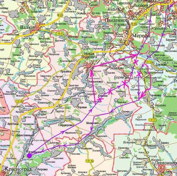 По просьбам владельцев 10-ти литровых бензобаков маршрут немного изменён. Дозаправка топливом будет в Тарановке. А на обратном пути - в Новой водолаге.