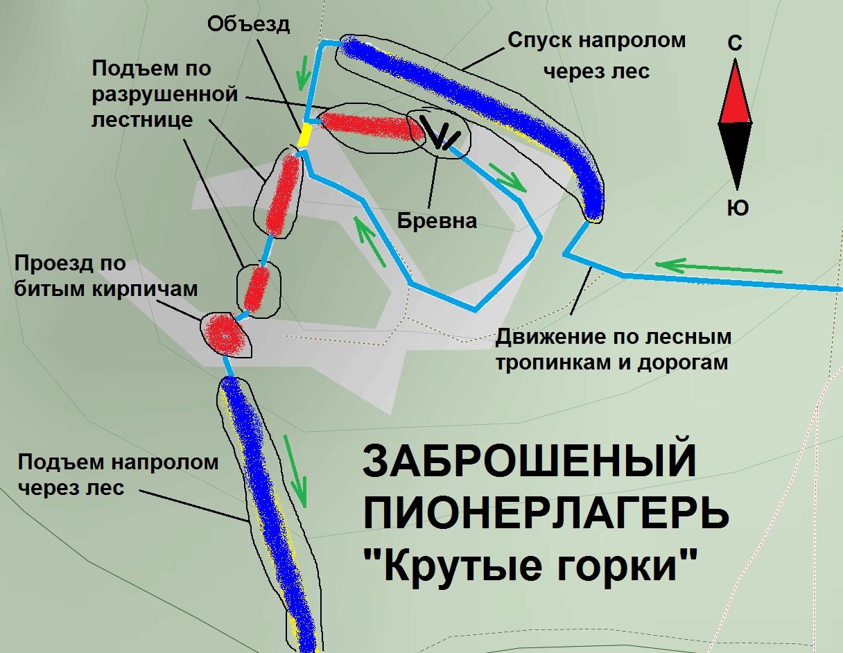 Славик, то показан объезд действительно сложных участков, некоторые горки и спуски не есть сложными, думаю, ты сможешь их преодолеть. А препятствия можно объезжать, их объезды не показаны