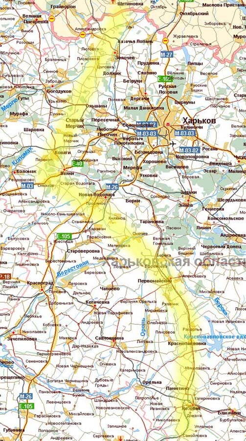 Есть такая задумка - проложить интересный маршрут вне асфальта для прохождения Муравского шляха на мотике. Начинать исследование можно на севере Харьковской области с продвижением на юг. Примерный коридор прохождения обозначен на карте желтой линией.