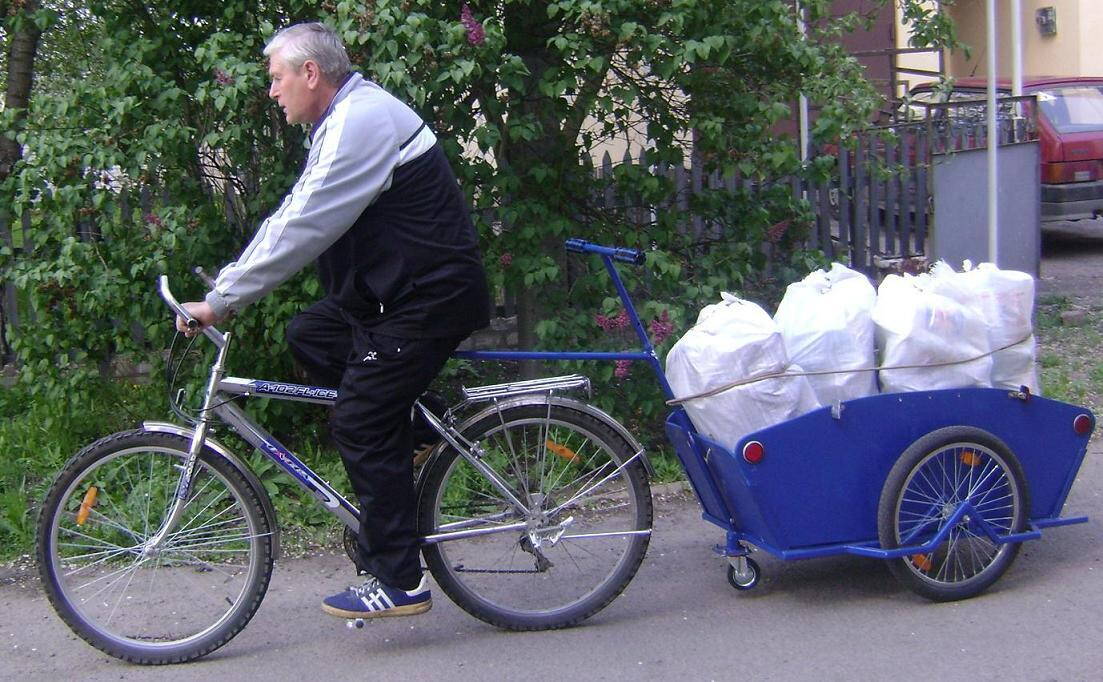 Когда был школьником сделал себе прицеп из фанеры и ДВП, зависимой подвески на пружинах и петлях дверных. Ездил по абрикосы, на 25 км в одну сторону. Тягачом была "Украина". "Фаркопом" был багажник, к нему крепился прицеп. После полугода эксплуатации в один прекрасный момент груженый прицеп переломил крепление к велосипеду и он улетел на встречку. Хорошо что не было машин :eek: . В связи с материалом моей версии прицепа, весил он около 20-25 кг. Так что если сделать "по уму" то в 10-15 кг уложиться не проблема. Ну и запас прочности будет само собой на много больше чем у фанеры :D