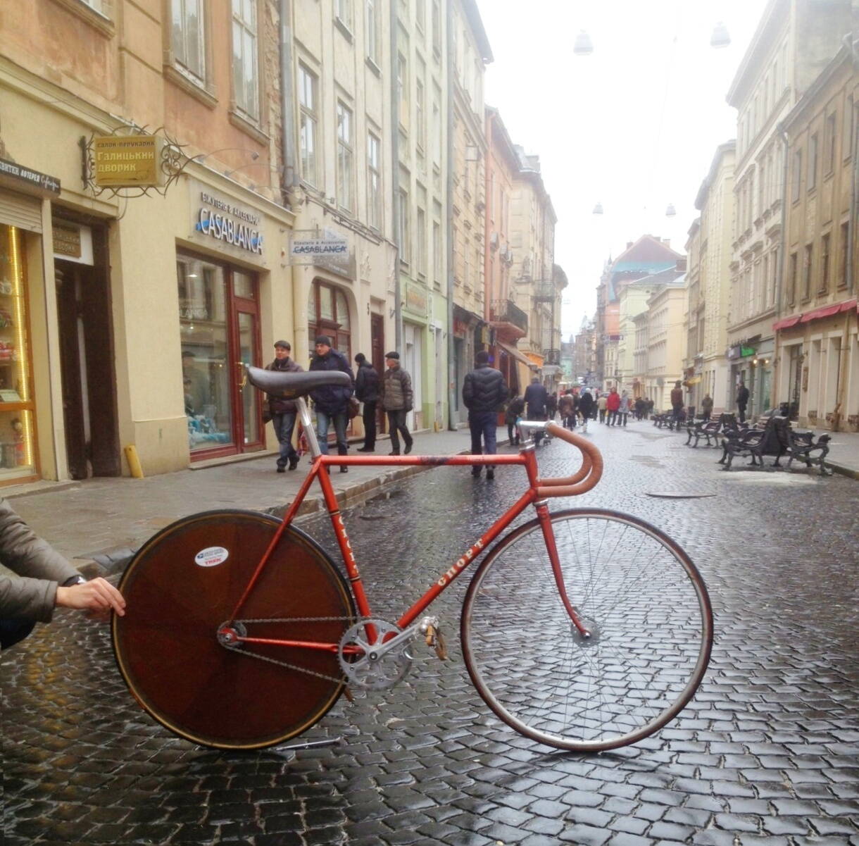 В целом велосипедом я очень доволен. Пьітался скомбинировать все по классике, чтобьі избежать неуместного контраста. Сразу скажу, что диск не доставляет никаких неудобств, кроме того, что привлекает внимание прохожих).