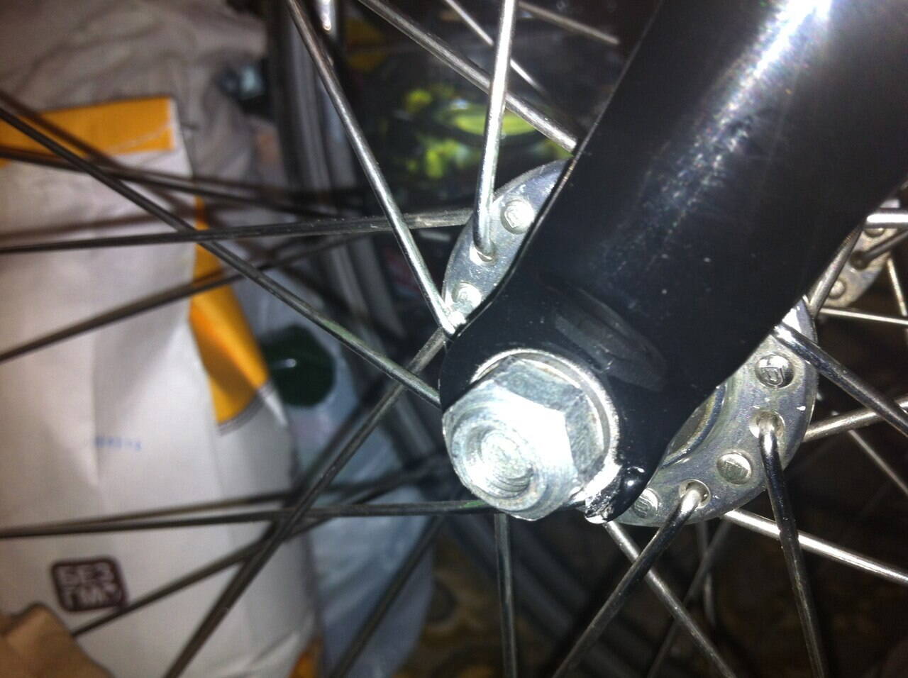 да и переднее колесо тоже геморное оказалось,одно дело хвз сталюгу сжимать дропы вилки,а тут карбо вилку приходиться еле усаживать,да еще и очень маленькие болты(на 14 ключ) :facepalm: на последнем фото можно даже увидить,что гайка не до конца закручивается.