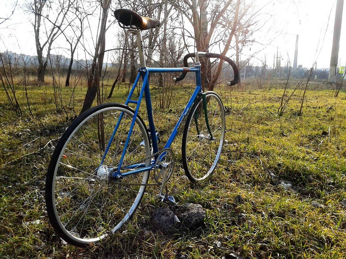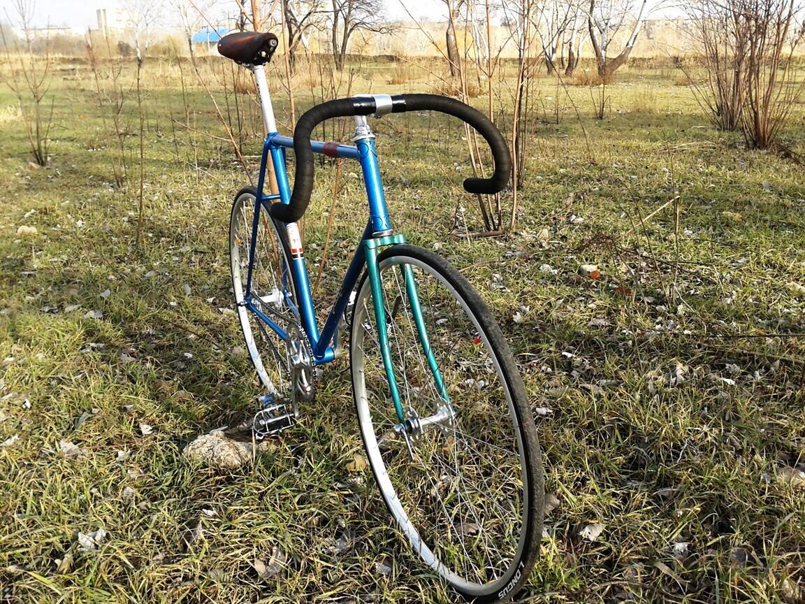 Переднее колесо: Обод классика трек, втулка ХВЗ спецзаказ, резина Longus 700x23