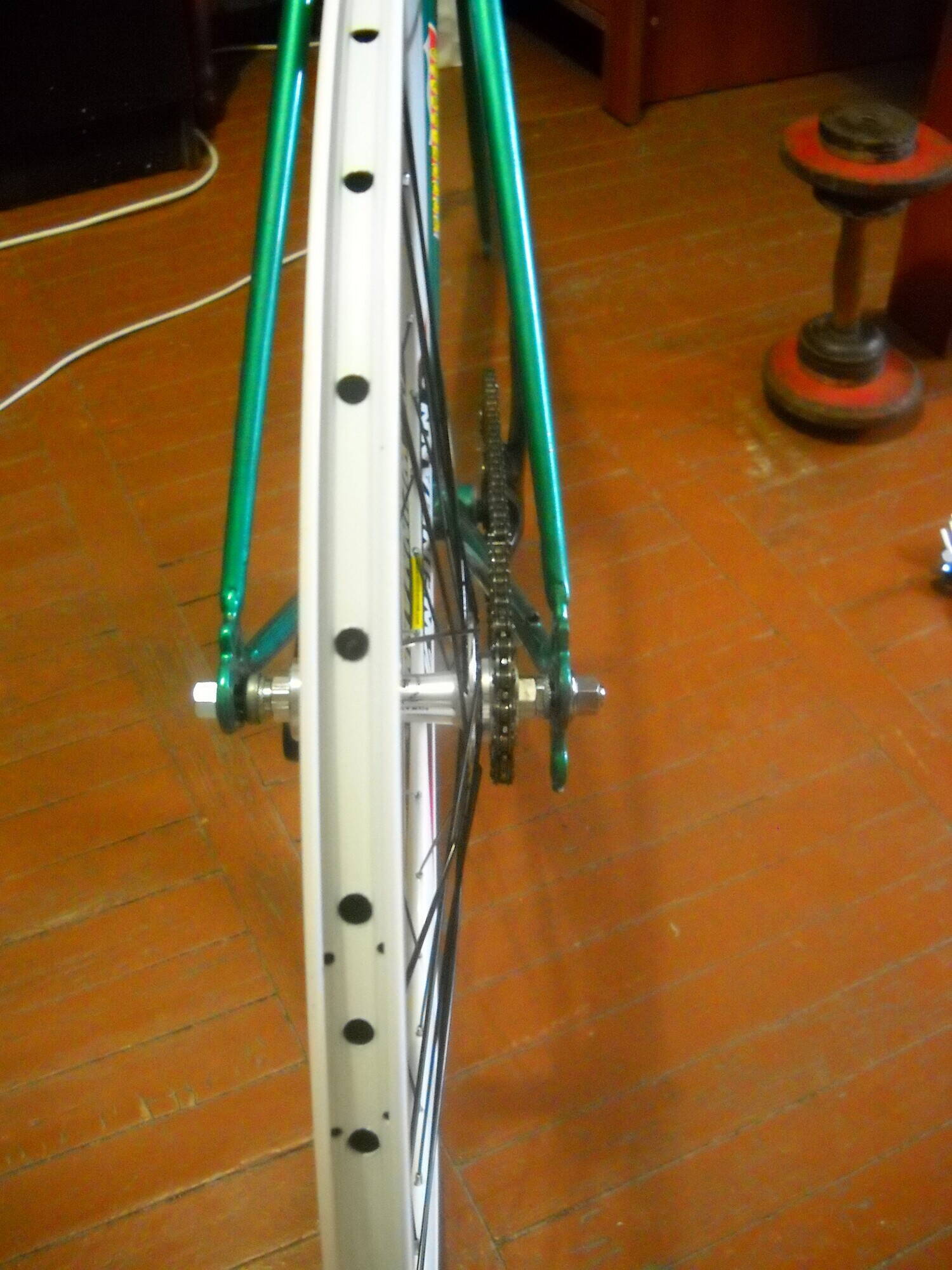 у него ж флип\флоп.. колесо ровное пусть будет. Лучше раму померяй ниткой и линейкой. мож гнутые перья, да выпрями.