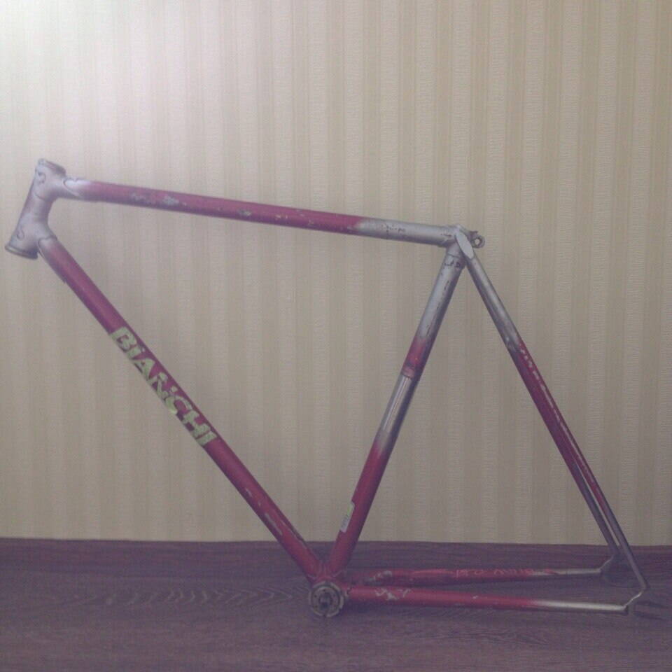 Это рекорд. Собирать на нем фикс стоит, но в конкретном случае этой рамы - хз. Надо зачистить ржавчину в подозрительных местах и посмотреть повреждения.