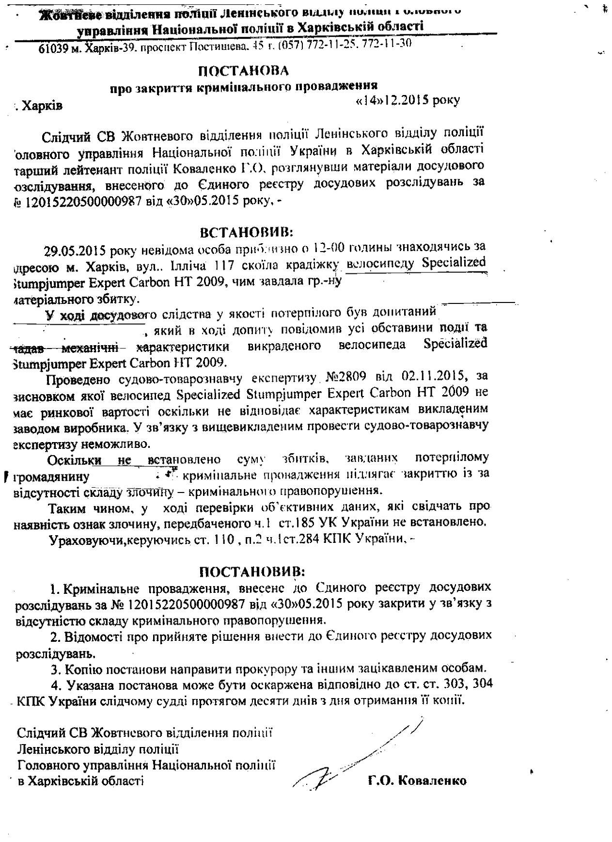 Долго не хотел выкладывать постановление о закрытии дела о краже моего вела, но может кого нибудь еще удивиться как работает полиция!
