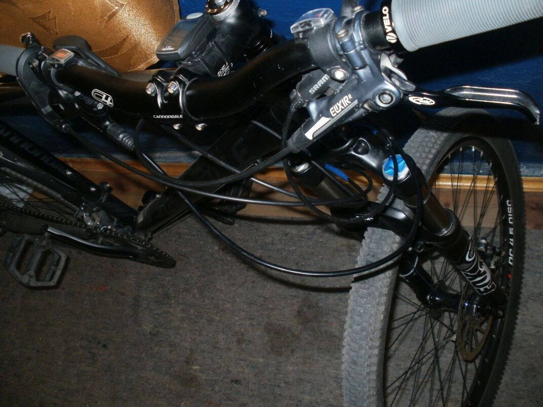 Вилка FOX float 32 (100мм, прикреплен велокомпьтер на стяжках белой и черной)