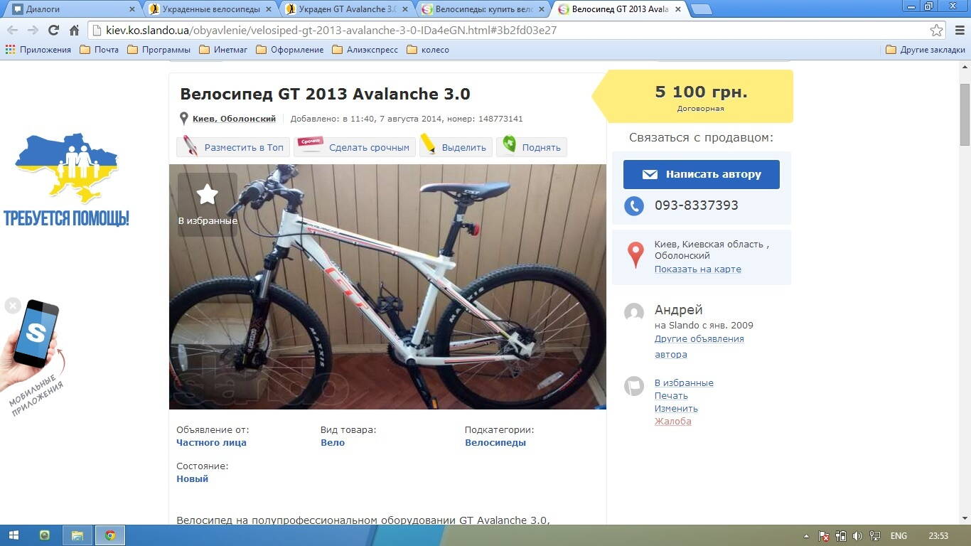 Заголовок сообщения: Украден GT Avalanche 3.0 Харьков