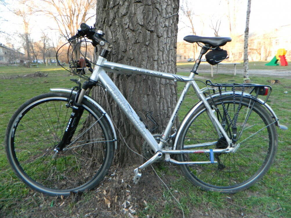 В ночь с 7-го на 8-е июля из дома по улице Мира вскрыв два замка утащили велосипед. Никаких следов не оставили, замки забрали с собой, попытались украсть ещё и велик сына, раскурочили кодовый замок, но отстегнуть не смогли. Как бы я потом ребёнку в глаза смотрел? (( Вызывал милицию, составили протокол, посыпали всё порошком, ничего не нашли, говорят, скорее всего в перчатках были. Фотки прилагаются. Может кто увидит, буду благодарен за информацию. Цвет серый, марка итальянская, "Bottecсhia" . Всё стоит родное, наклейки и надписи на всех узлах. Из особых примет трёхниточная резинка на багажнике (вместо обычной пружины), подседельный штырь с амортизатором, провод велокомпьютера посередине перемотан синей изолентой, нет пластмассовой защиты на передней звезде. Связаться можно по тел. 095-522-59-18, 098-403-16-41. На милицию надежды мало, может добрые люди помогут.