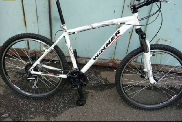 второй велосипед жены,winner красно-белого цвета,рама 19,обвес Shimano,тормоза вибрейки Shimano,из особых примет на раме,сиденье родное,белого цветаверхней трубке коцка,правый переклюк хорошо коцнут,сиденье немного накренено в лево,на пере иметься черная наклейка против ударов цепи