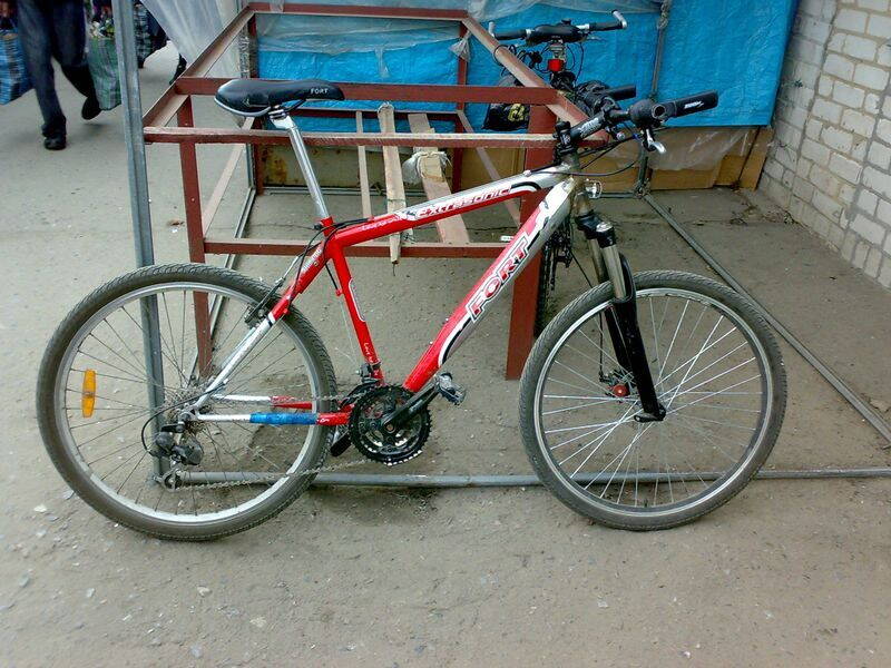 FORT Extrasonic 2008, красный с серым, на фото такая же модель но не он сам( руль прямой). Из примет: седушка подрана в в 1 или 2-х местах справой стороны, под рамой сумка самодельная из красного баннера, педали - левая неродная и вообще "левая", заднее колесо спускает через 12-16 часов после накачки. Телефон 063-241-98-16, Борис. Перезваниваю.