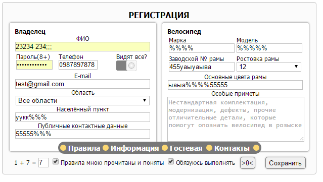 Вообще, ИМХО, нужно любую информацию об уже украденном велосипеде, включая максимум контактных данных показывать ТОЛЬКО тому, кто ввел правильно номер рамы при поиске. А не ограничиваться публичным контактом, который реально могут сменить, не проверять, забыть.