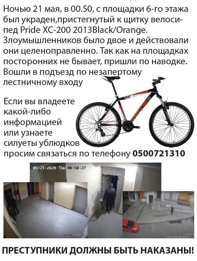 Нночью 21 мая 20202 года в Харькове был украден велосипед Pride XC-200 26" (2013) Black-Orange