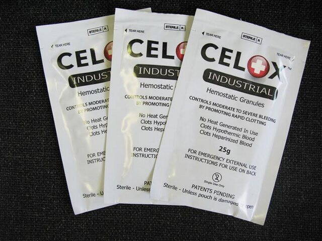 Celox, он как бы не для обработки раны, он для остановки обильных кровотечений, ну и внутренних кровотечений.