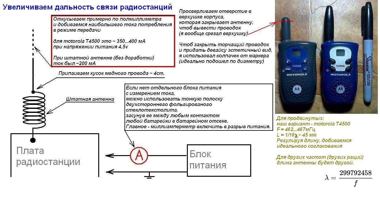 Мощные, дорогие рации со всякими сканерами, скремблерами и т.п. рядовому туристу в основном без надобности. Предлагаю вариант доработки бюджетной радиостанции (на примере Motorola T4500). Повторить сможет любой пионер, без навыков в радиотехние. Смысл заключается в более точной подгонке антенны к резонансной частоте. Дальность связи увеличивается в 1,5...2 раза.
