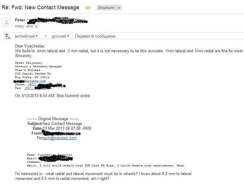 Это их мнение и они об этом прямо сказали, но назвать это стандартом нельзя, нужно поискать в другой литературе именно по поводу строительства колес об этих допусках, мне попадались пределы 0.5 радиалка и 0.2 боковое (при чем некоторые вещи грамотно править механическим путем). Имея станок с индикаторной головкой можно вывести колесо в 0.04 мм (я и без нее в 0.06 выводил), но есть ли в этом смысл если разница в натяге спиц будет более чем в 5-20 кг, натяг куда более влияет на качество колеса чем его идеальная ровность...