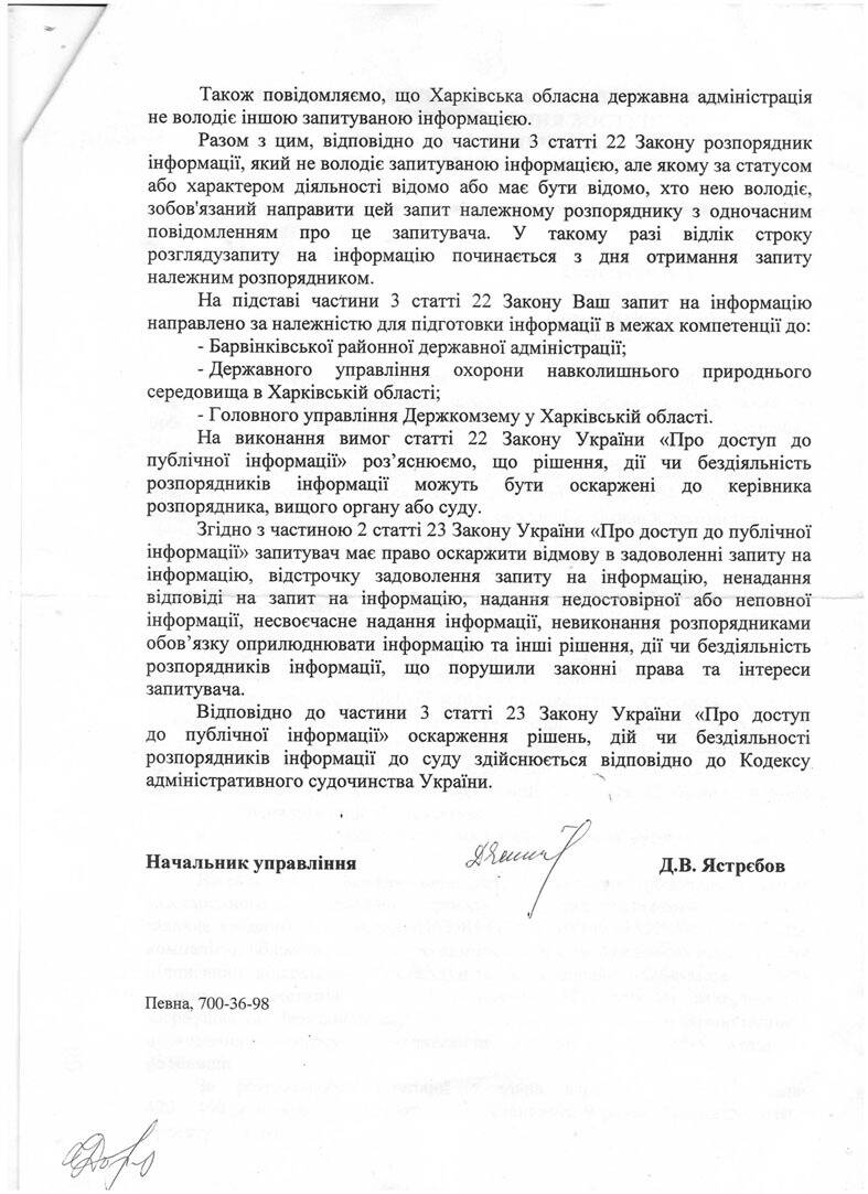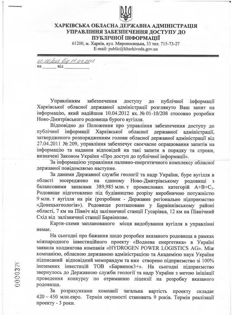 Харківська обласна рада це звернення проігнорувала, прийняв 21 червня Рішення "Про розгляд клопотання Державної служби геології та надр України щодо продажу на аукціоні спеціального дозволу на користування надрами", - чим і поклала початок видобуванню в Барвенківському районі бурого вугілля.