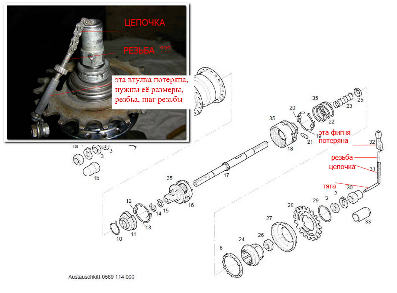 Есть желание восстановить, особых сложностей не вижу. Сухарик померил - изготовят аналогичный, тяга с цепочкой и резьбой продается - нашел на рынке, но пока не покупал. Следующую за ней втулку можно выточить. Вот в этом и вопрос: ее размеры и резьба. Если кто может подсказать и схематически нарисовать - буду признателен.