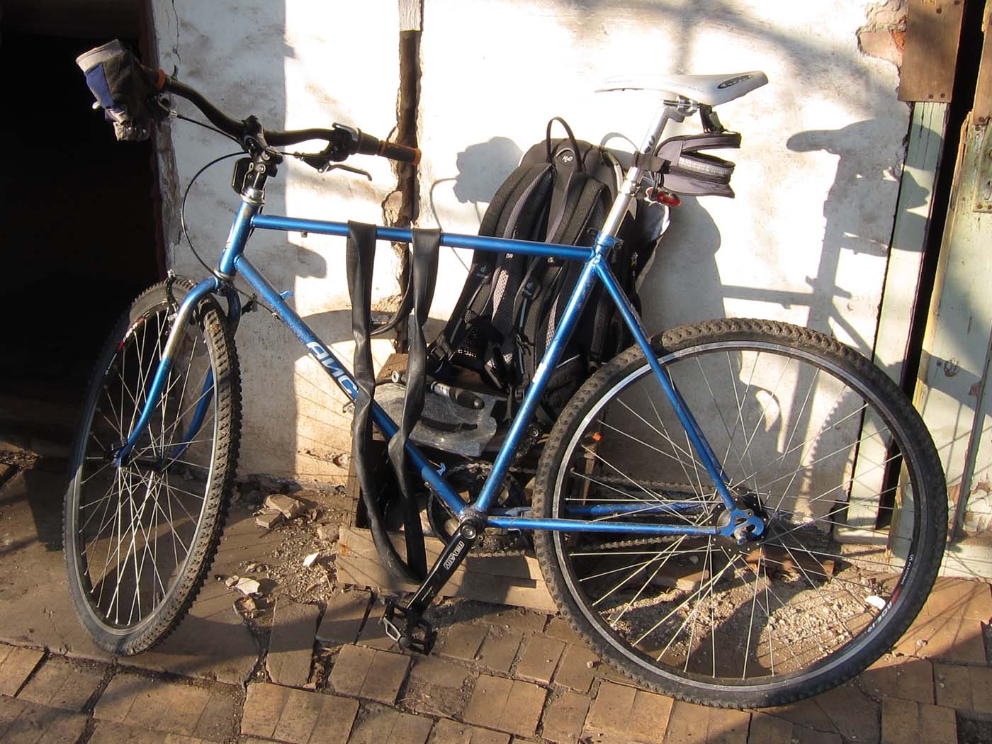 Стал думать что с ним дальше делать, потомучто долго б я с вываливающейся кареткой не протянул. До дома было больше 20км. Решил дотянуть хотябы до дачи(7 км). Отправившись туда через 4км образовалась еще одна "бяка". Левая чашка была плохо затянута (из инструмента был только съемник каретки без ключа) и открутилась, теперь уже заклинил правый шатун. Кроме того левая чашка заяйцилась и ни в какую не хотела обратно вкручиваться. 3 км пришлось его буксировать до дачи там и оставил.