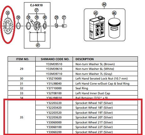 В графе Sprocket Wheel (задняя звезда) указывается диапазон 16T-23T.