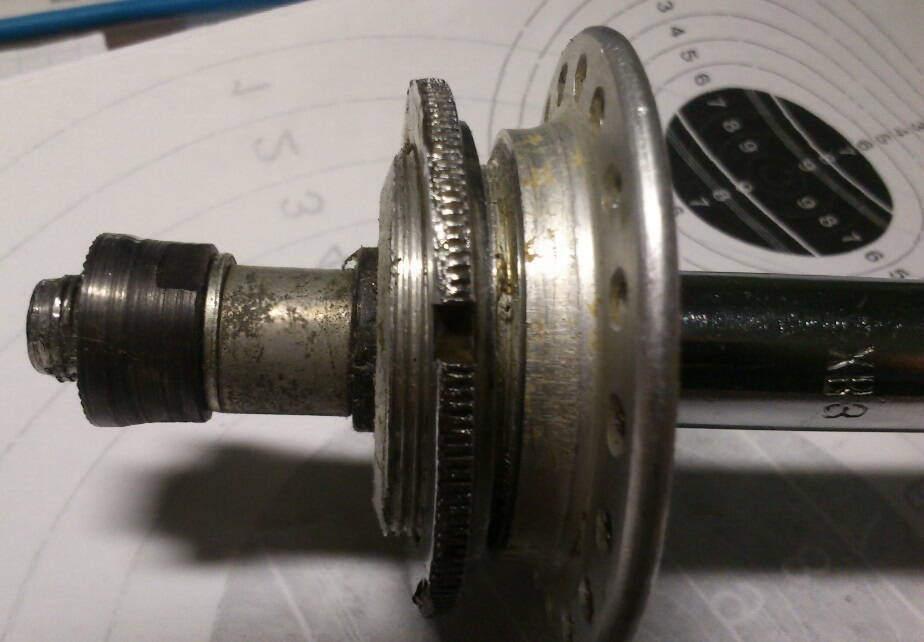 Смешно получилось - спорсил у деда: "Бывают в природе на 34?" - "Нет", отрезал он. Ну у него там в ящике несколько втулок было, полез туда, и вторую я ему со штангелем: "Смотрите". "Них*себе!", ответил дед. Давай разбираться - всё чики-пики. Как так и надо. Предположение о браке не подтвердилось - по втулке видно, что стояли спицы, т.е. колесо работало, и что-то на него было накручено. Резьба полнопрофильная, хорошая. Нулёвый пятерик проваливается, как я уже сказал (и показал :D ), штангель показывает 34,0. Нашли втулку с вхлам убитой обычной резьбой и к ней такую же трещётку, чтоб посмотреть - если обе резьбы убитые, не проваливается ли.. Накручивается, не проваливается. Х.З. Предположение об износе до такого размера начисто отпало. Да и если М35 ободрать до 34 мм, она станет просто гладкой. То есть, резьба конкретно М34 (шаг не меряли - на глаз 1 мм, но 24 TPI на глаз не отличить - снова хз)