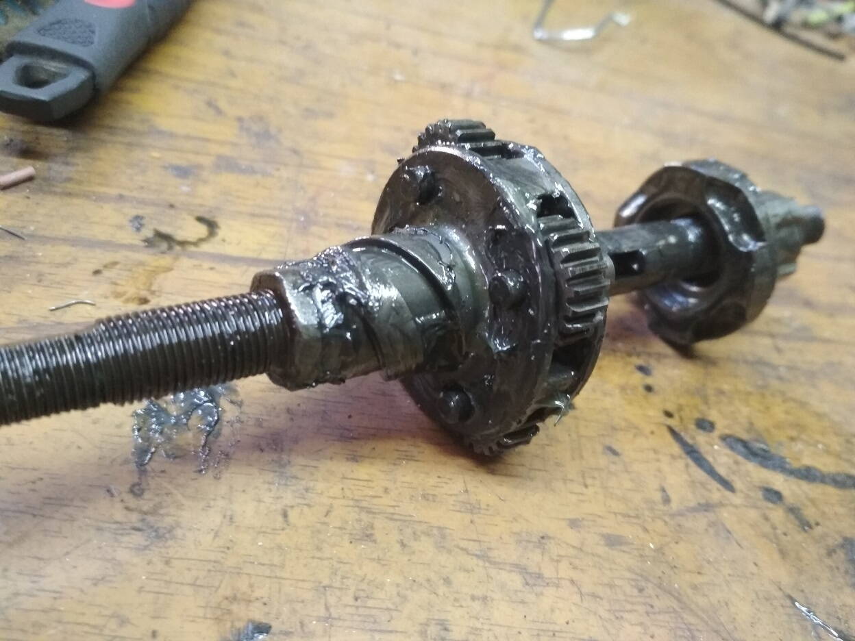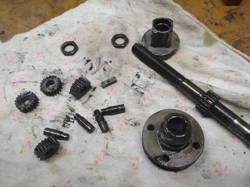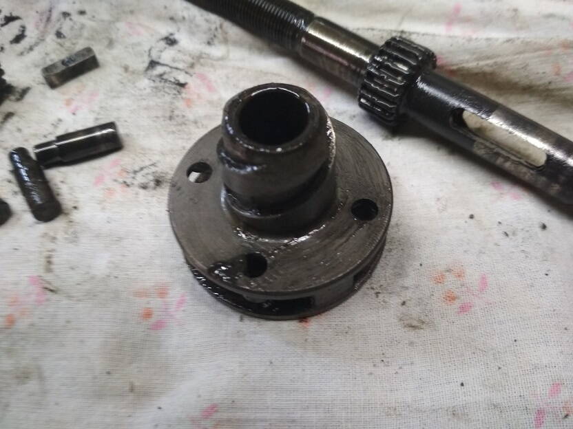 Далее раскручиваем конус с обратной стороны что бы снять ось с шестернями и толкателем. Надо делать аккуратно,что бы сам толкатель не потерять. Он маленький.