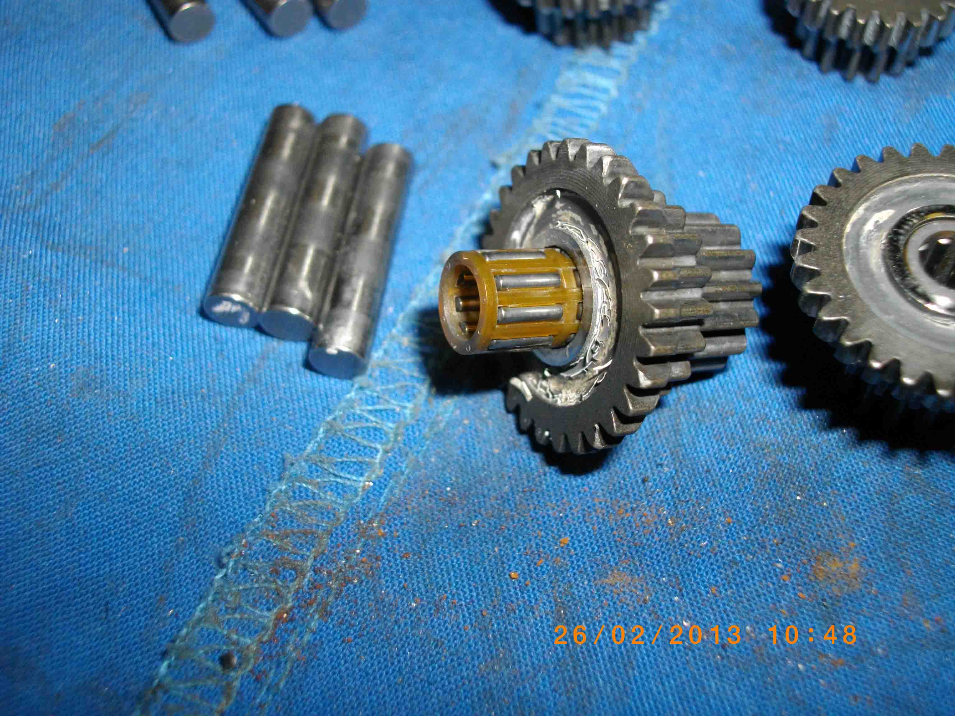 Затем я протупил еще раз, когда на блоке сателлитов я снял кольцо, не дающее выпасть этим самым сателлитам. Сначала ничего, но когда я положил блок в ведерко и стал весьма активно полоскать это в уайт-спирите, оськи повылазили и весь чертов блок рассыпался на пригоршню шестерен! Караул! :shock: