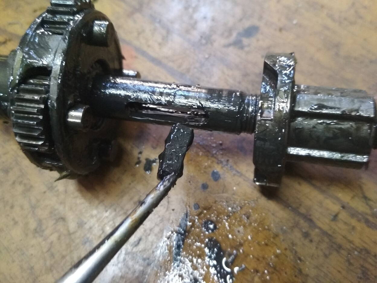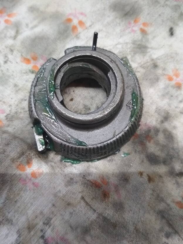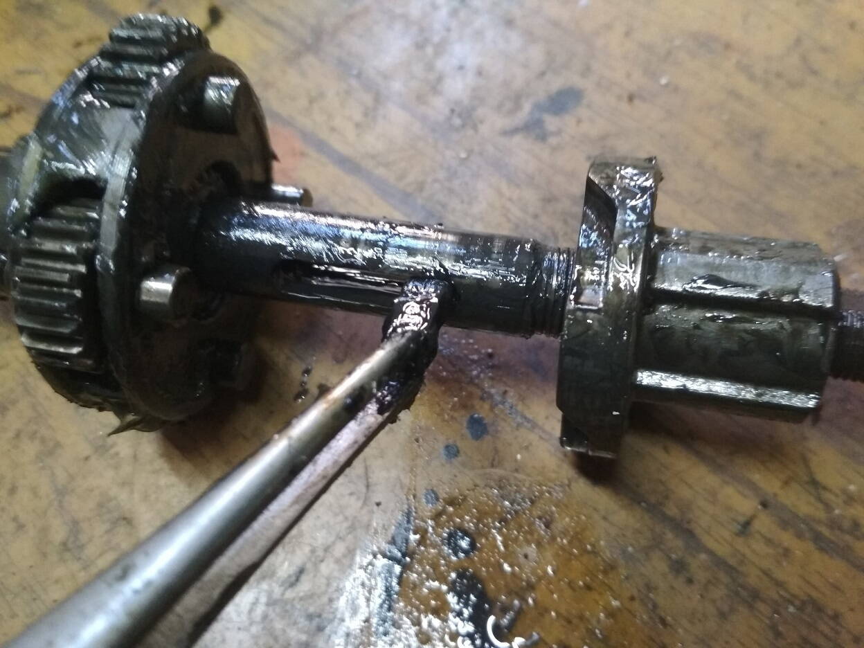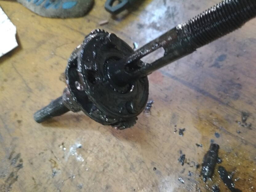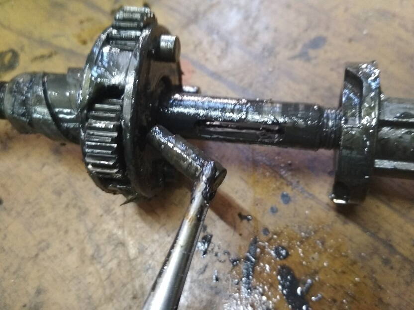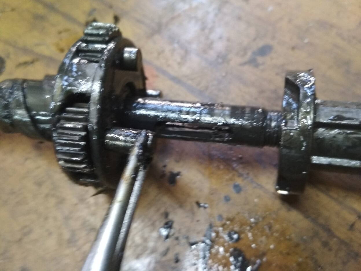 Далее раскручиваем конус с обратной стороны что бы снять ось с шестернями и толкателем. Надо делать аккуратно,что бы сам толкатель не потерять. Он маленький.