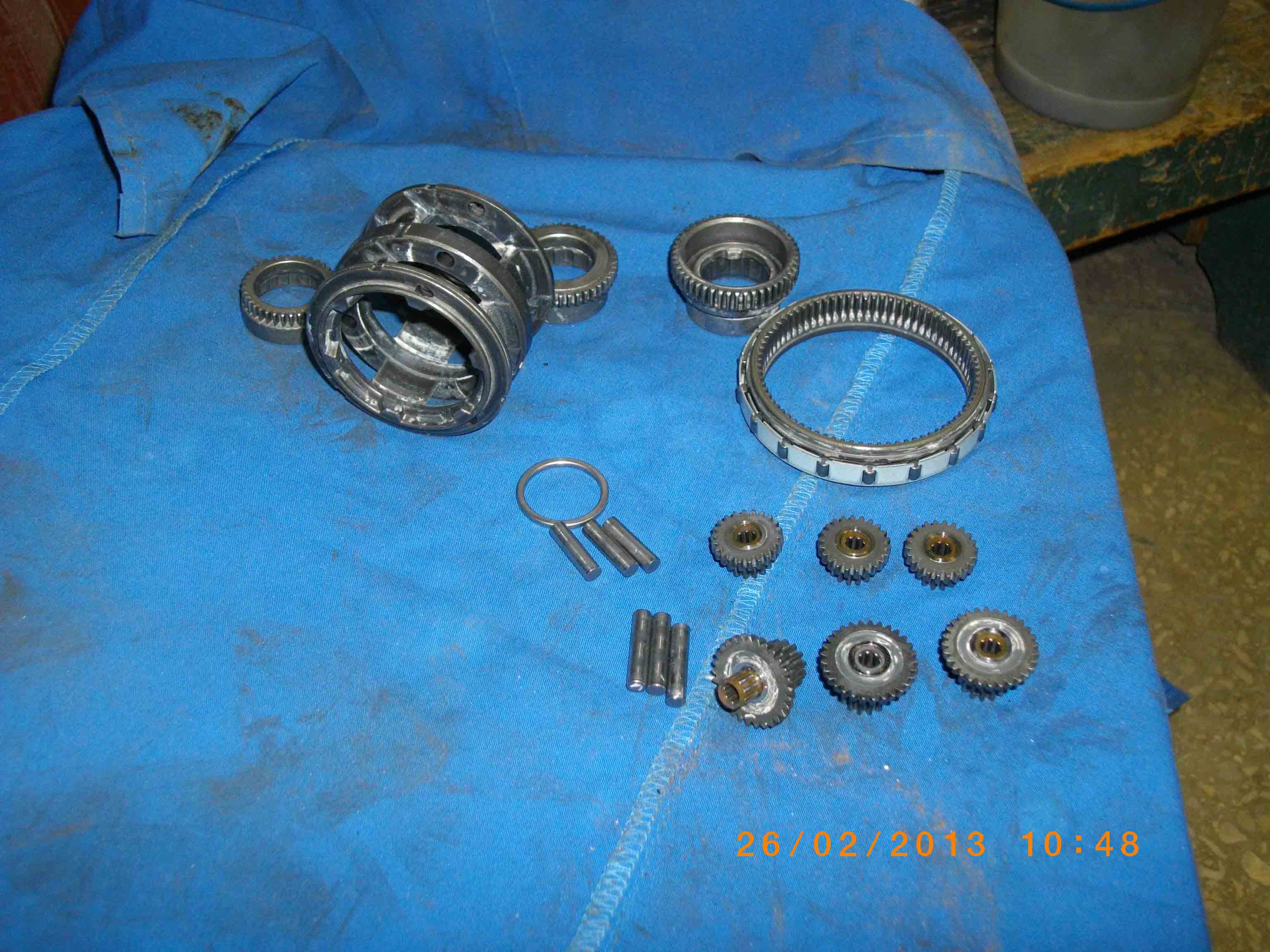 Затем я протупил еще раз, когда на блоке сателлитов я снял кольцо, не дающее выпасть этим самым сателлитам. Сначала ничего, но когда я положил блок в ведерко и стал весьма активно полоскать это в уайт-спирите, оськи повылазили и весь чертов блок рассыпался на пригоршню шестерен! Караул! :shock: