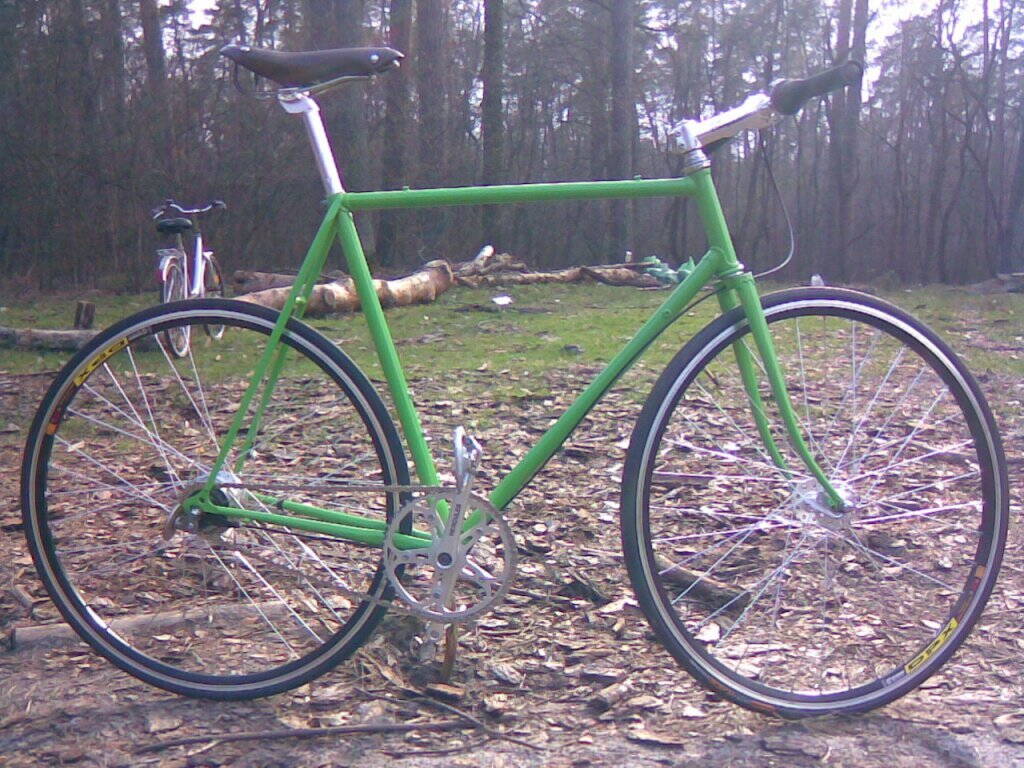 Велосипед собран не для длительных прохватов, для поездок на работы и просто по городу. Сейчас велосипед немного подшаманен, трос положил по советам бывалых, катафот на переднее колесо поставил. Фото пока нечем сделать.
