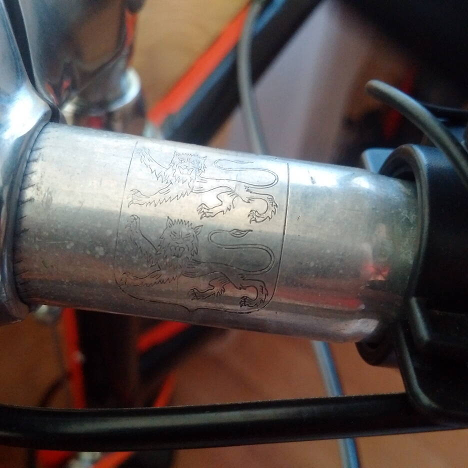 Вел был обнаружен предыдущим хозяином в состоянии полного упадка, отпескоструен, покрашен, отполирован. Превращён в... не знаю, крокодил, циклокросс, туринг. В то, на чём мне понравилось ездить, в общем.