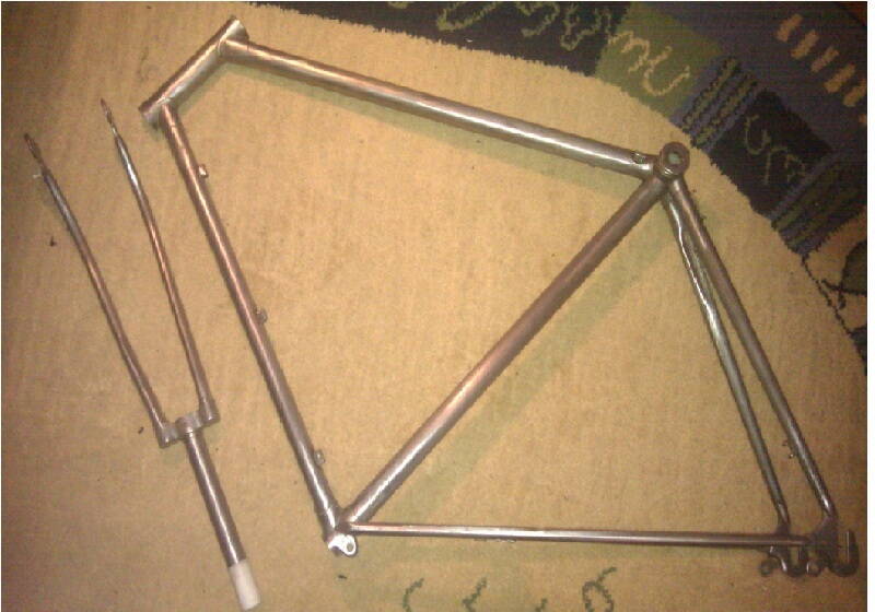 Привіт всім форумчанам, давно я нічого неписав, скажем не було про шо. Сьогодні я закінчив підготовку своєї рами до фарбування, до рами поприварював потрібні елементи для тросиків, позачищав все болгаркою, ще раз всю раму пройшов спеціальним кругом для болгарки і наждачним папером. і на кінець обезжирив якимось розчинником, 646 здається, тепер буде шукати де б помалювати, є пару знайшомих на СТО з ними поговорю, хочу вилку в білий колір а саму раму у якийсь темний, ну то буде залежати від того яка фарба є в наявності, також мені вже зібрали колеса.