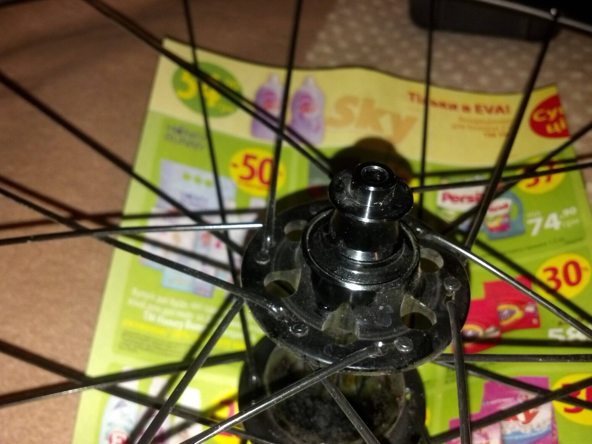 Для сравнения на переднем колесе внутри оси есть место под шестигранник и крутится легко и без люфта плавно.