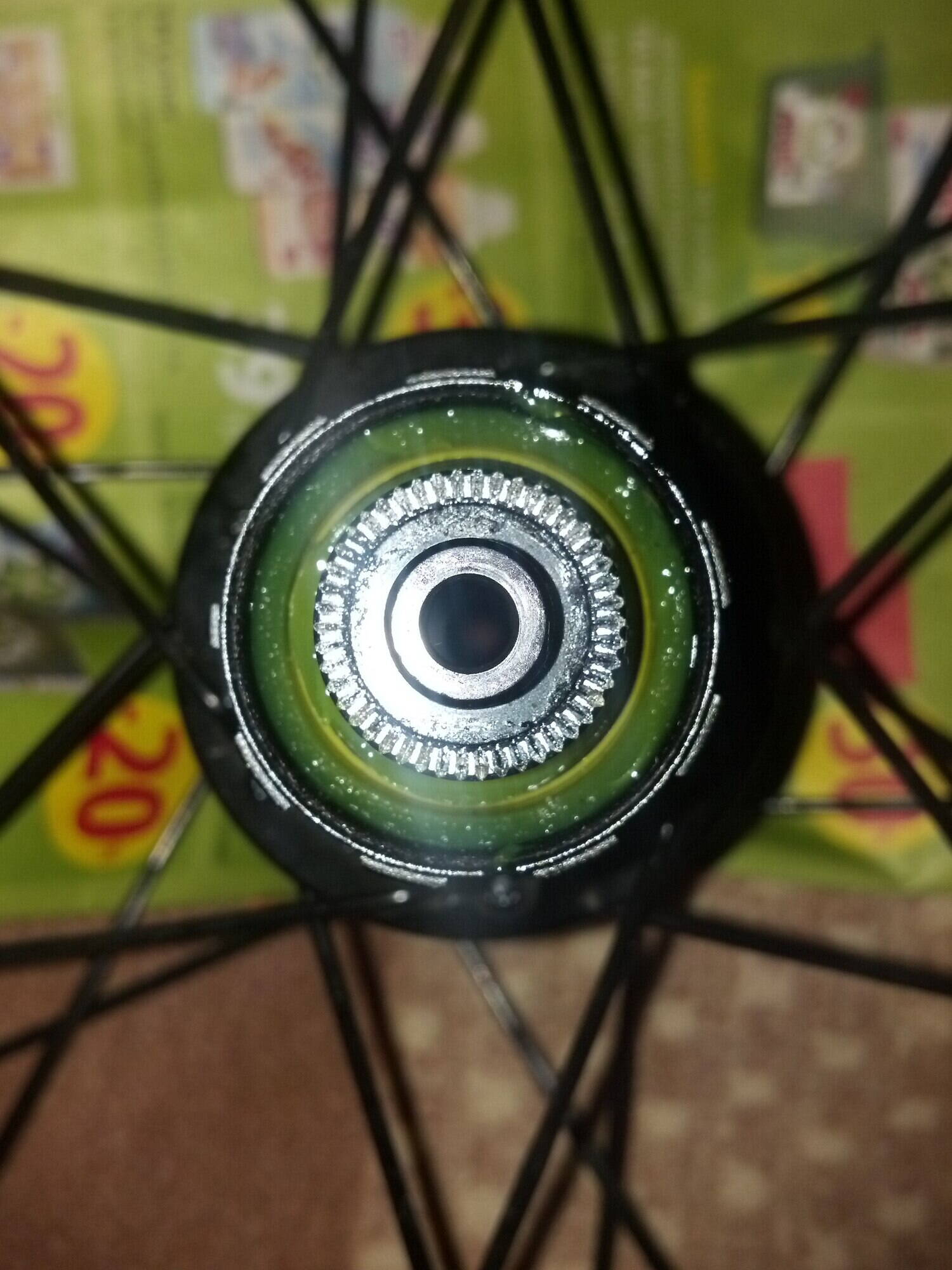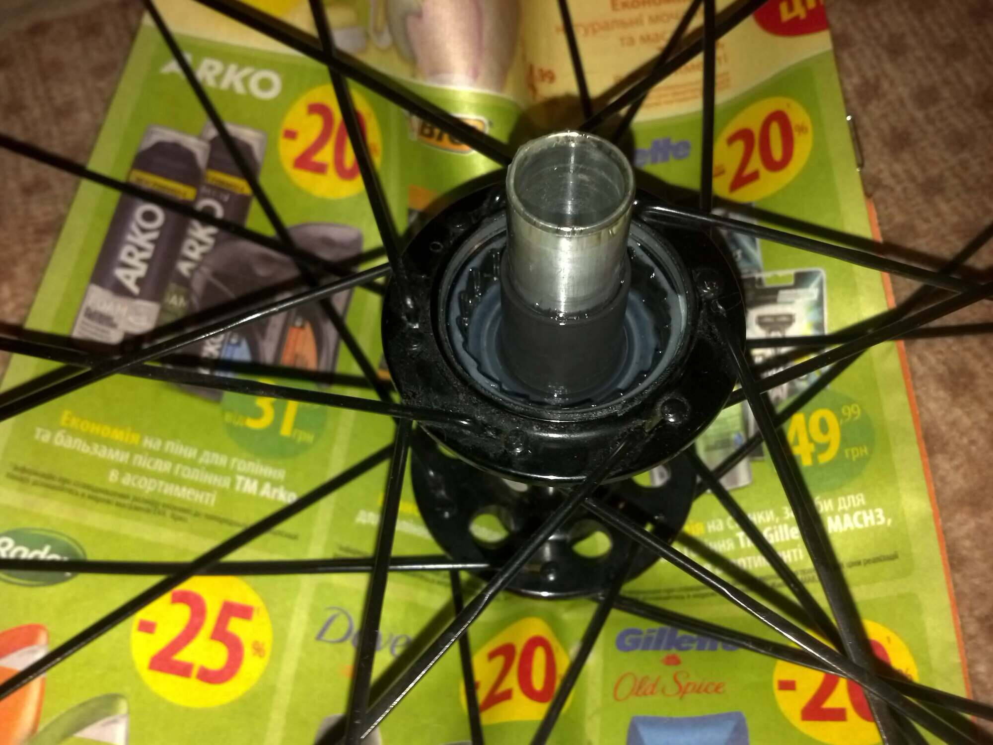 Для сравнения на переднем колесе внутри оси есть место под шестигранник и крутится легко и без люфта плавно.