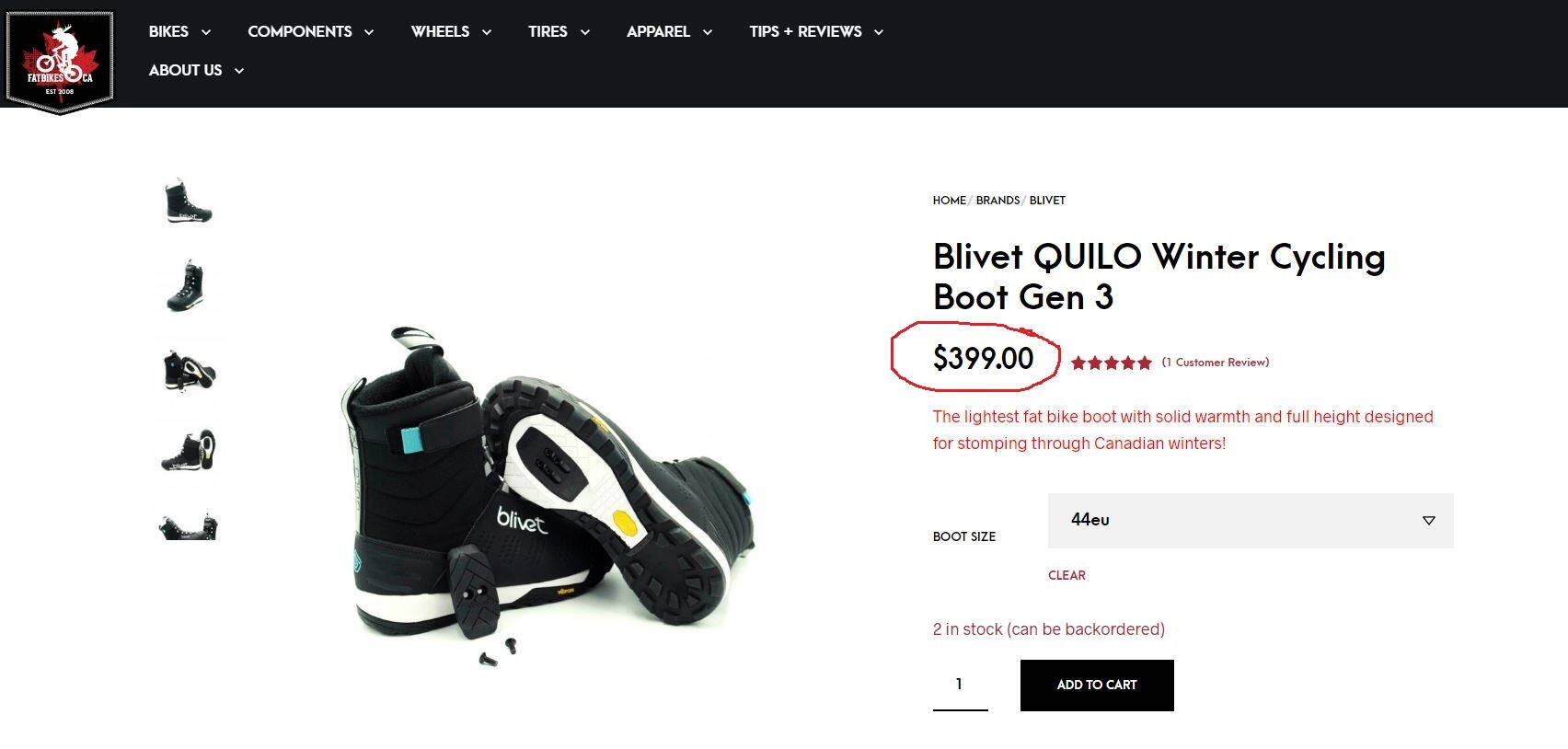 Фото с примерной стоимостью зимней велообуви.